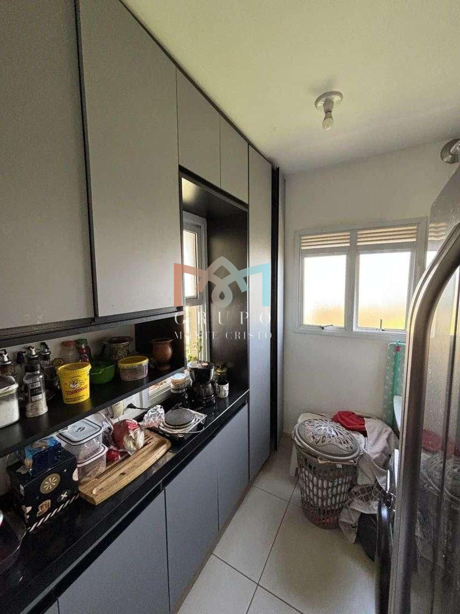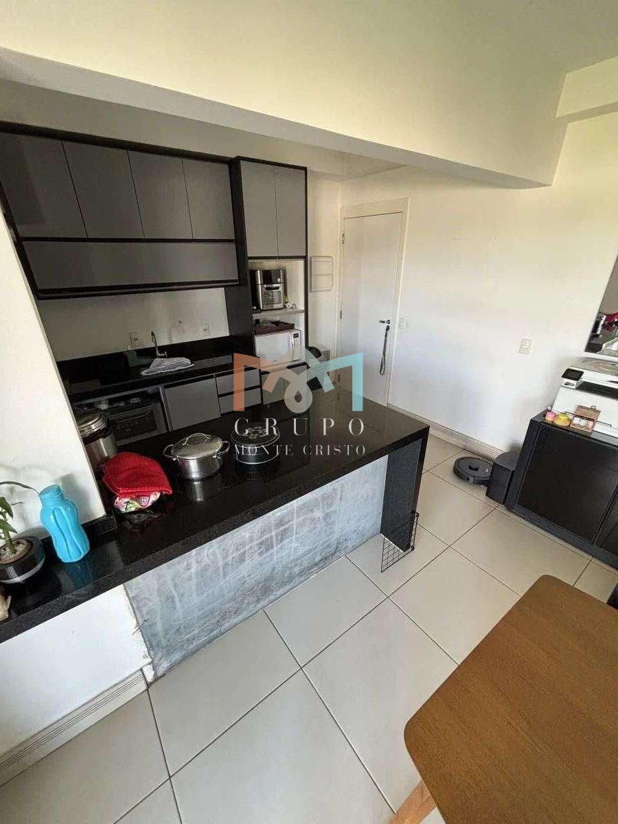 coz integrada com grande bancada de granito polido, sacada ampla, vista maravilhosa 13 andar, com bancada em granito e janela interna para cozinha;