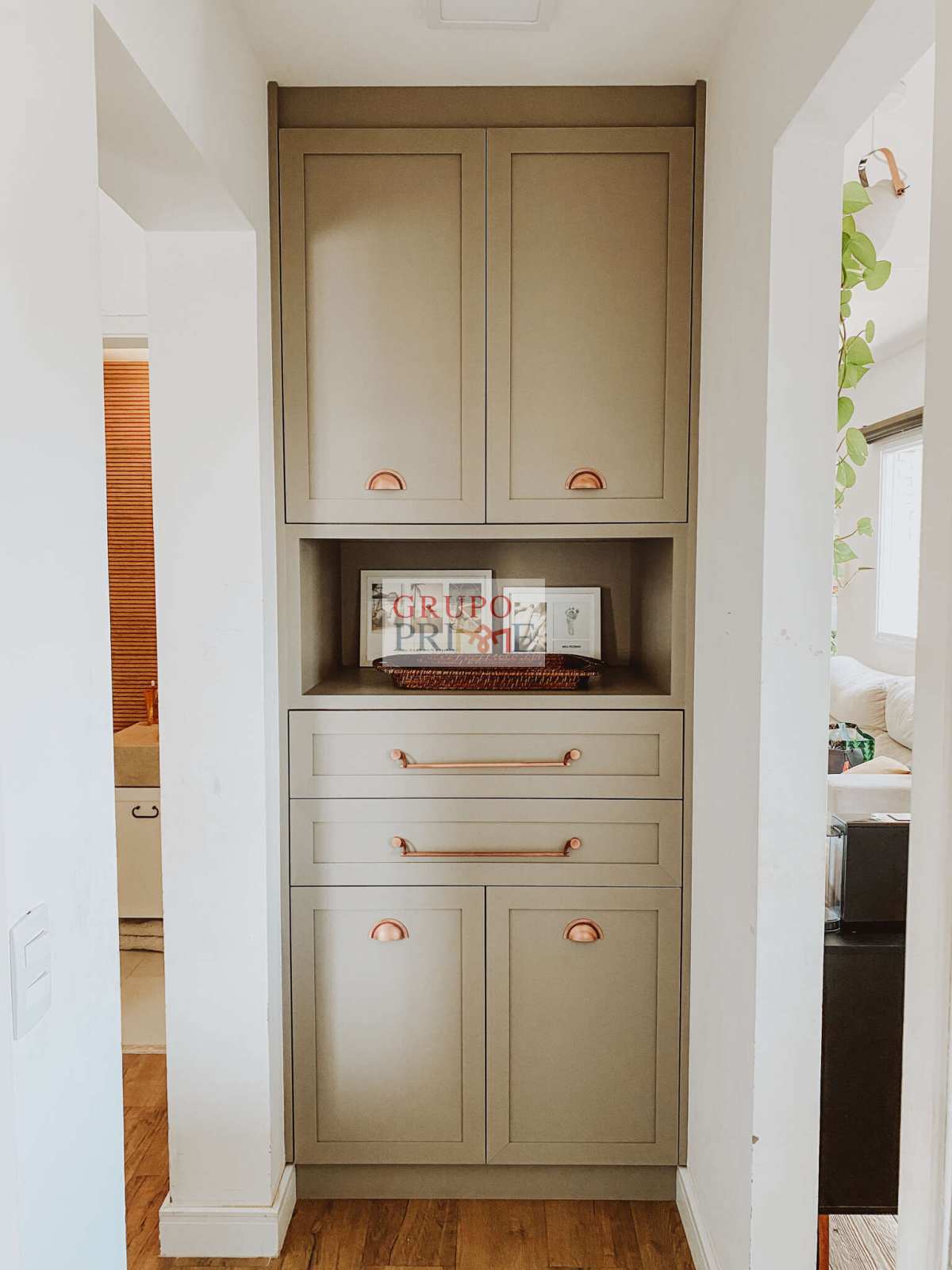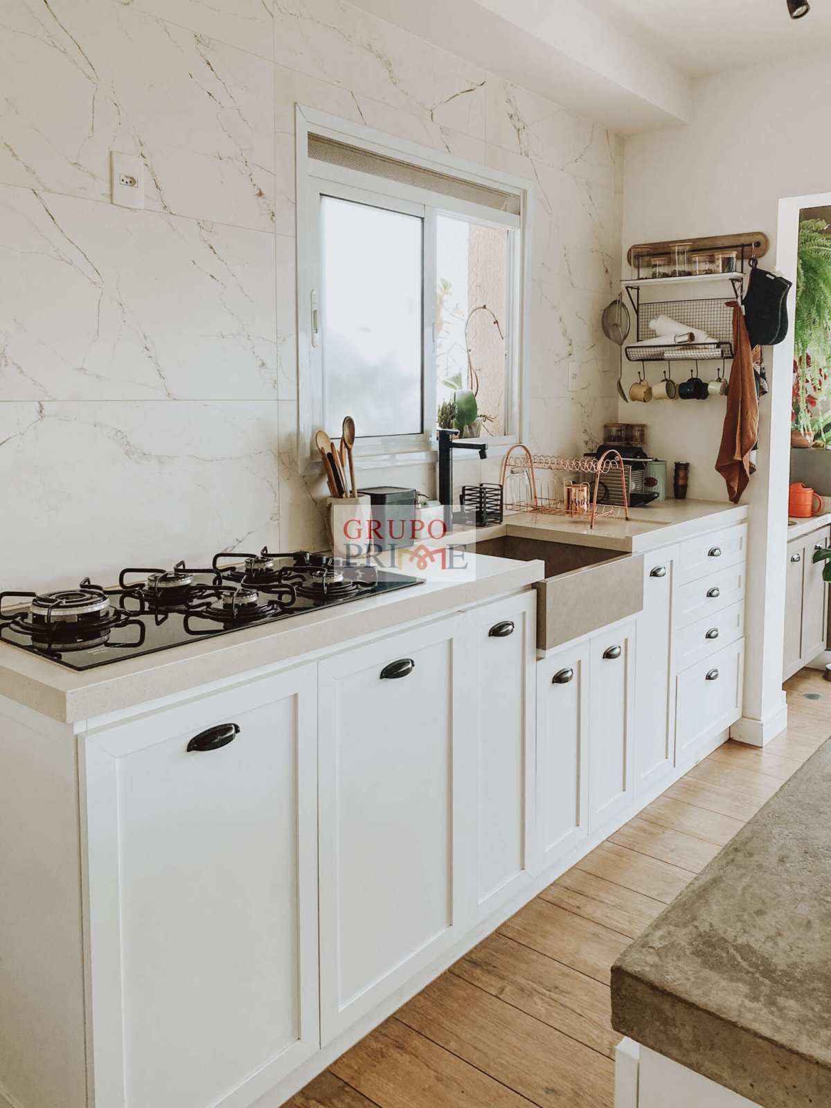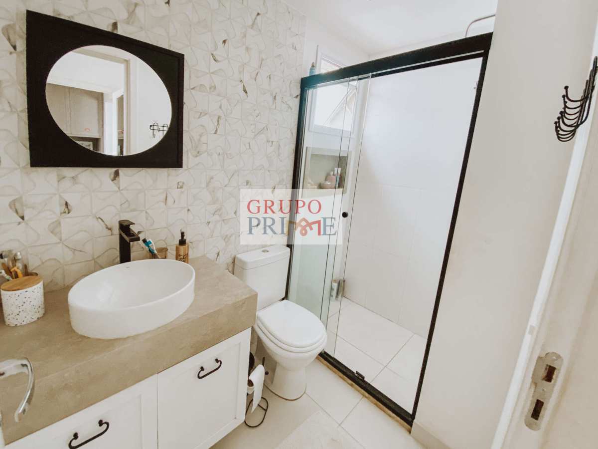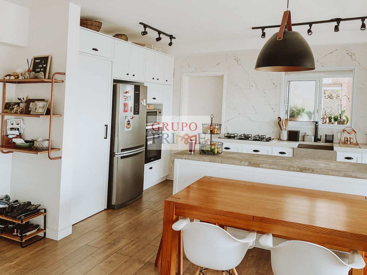 3 Ar Condicionados, Piso e revestimentos em porcelanato de alto padrão. Cozinha com “Farm Sink” fabricada em porcelanato de massa única, e Bancada-Ilha em Concreto. Armários embutidos na cozinha, varanda, lavabo, despensa e banheiros. Suíte casal com Open closet, incluindo 2 cômodas, prateleiras superiores de alta resistência, prateleiras com alça de couro na lateral da cama, e sapateira. Segunda suíte com porta celeiro, guarda roupa e estantes. Os acabamentos seguem uma fusão dos estilos minimalista, boho e industrial, favorecendo para um ambiente aconchegante, moderno, de fácil manutenção, bem iluminado e amplo.