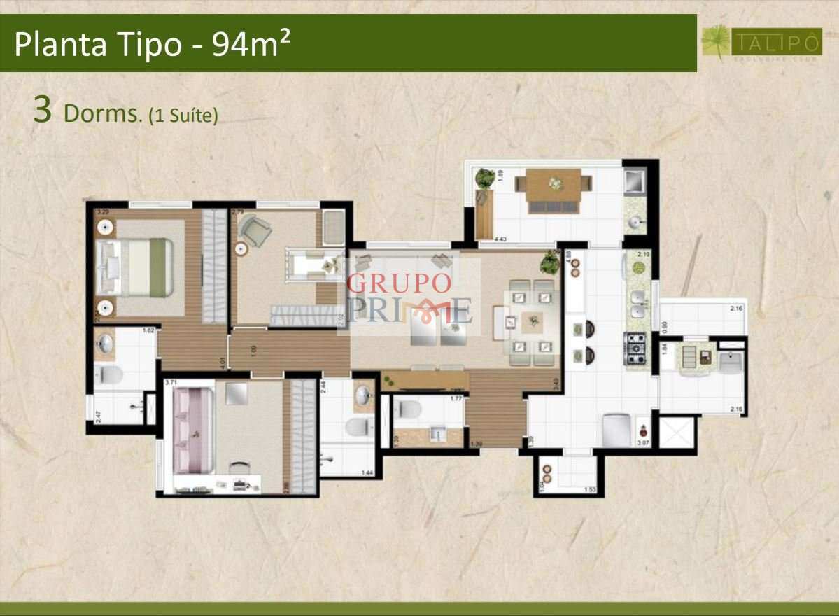 3m² extras de depósito (nem todos os apartamentos do condomínio possuem), e 3 vagas cobertas no subsolo.