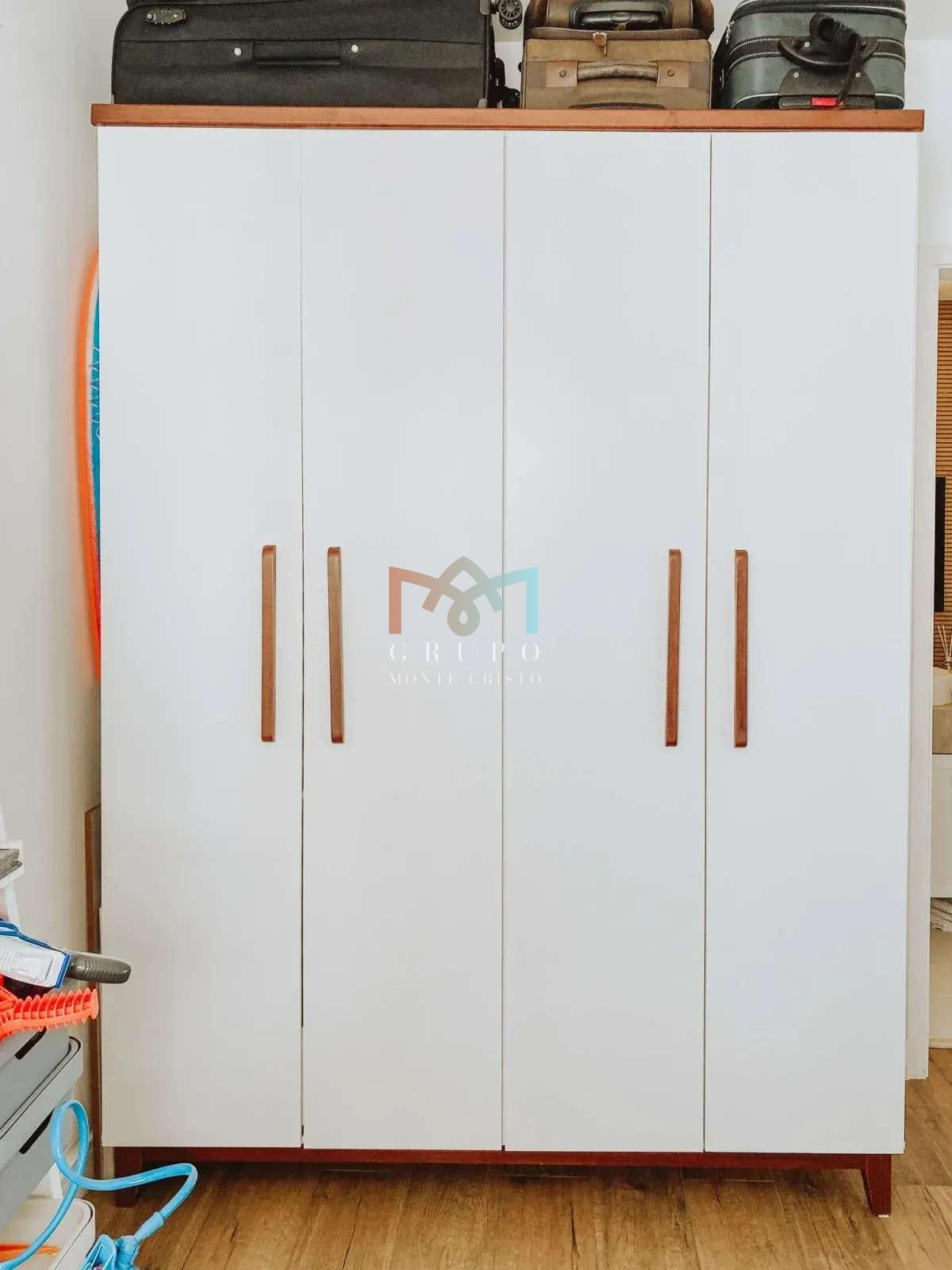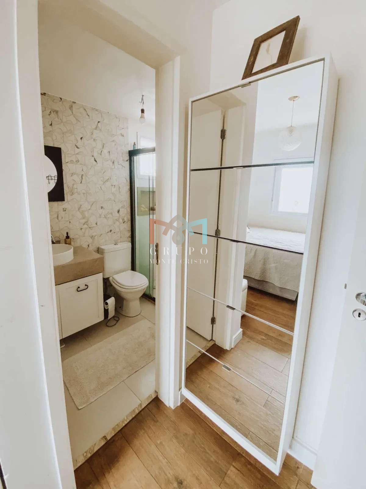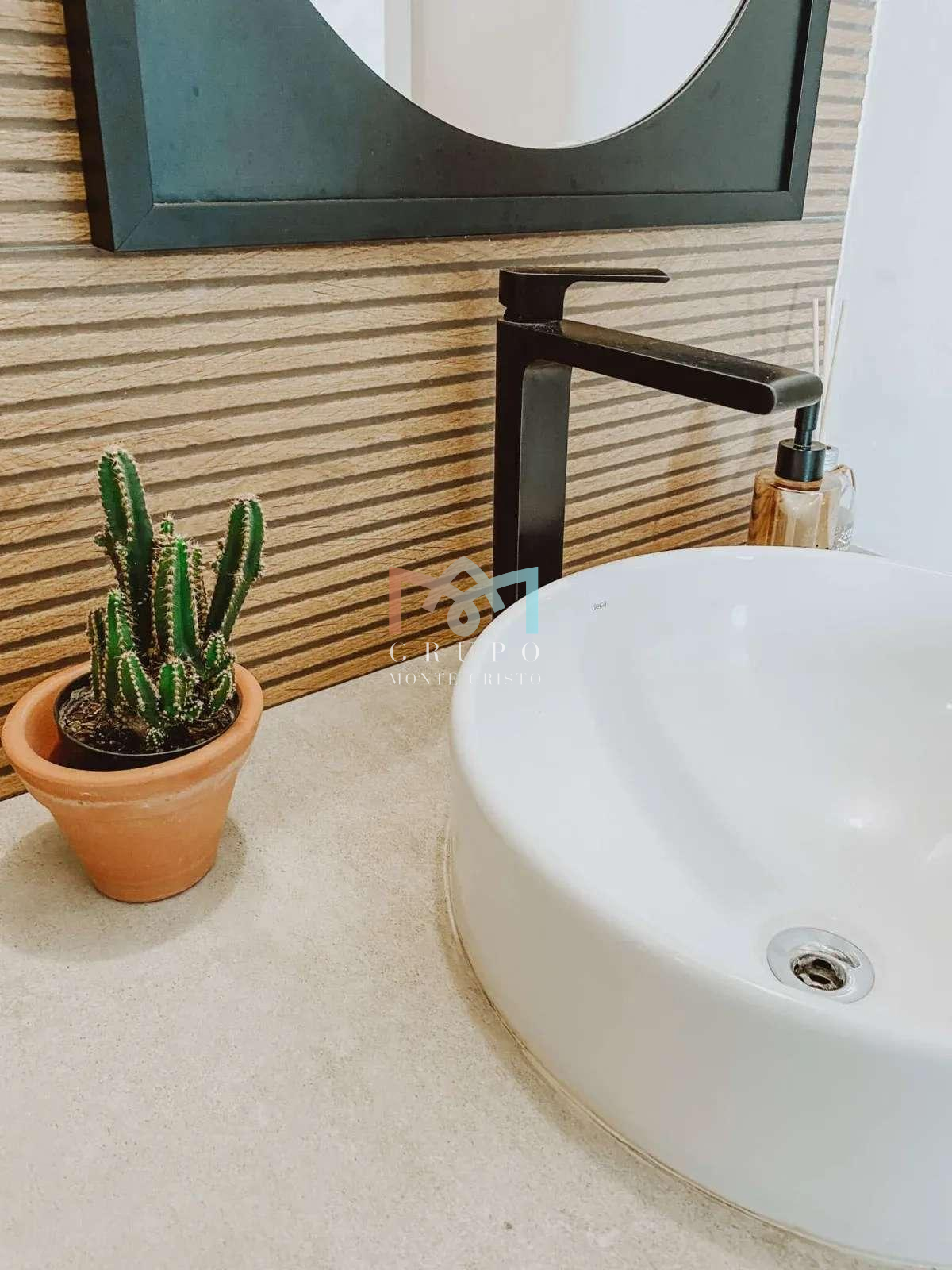 Ar Condicionado, Piso e revestimentos em porcelanato de alto padrão. Cozinha com “Farm Sink” fabricada em porcelanato de massa única, e Bancada-Ilha em Concreto. Armários embutidos na cozinha, varanda, lavabo, despensa e banheiros. Suíte casal com Open closet, incluindo 2 cômodas, prateleiras superiores de alta resistência, prateleiras com alça de couro na lateral da cama, e sapateira. Segunda suíte com porta celeiro, guarda roupa e estantes. Os acabamentos seguem uma fusão dos estilos minimalista, boho e industrial, favorecendo para um ambiente aconchegante, moderno, de fácil manutenção, bem iluminado e amplo.
